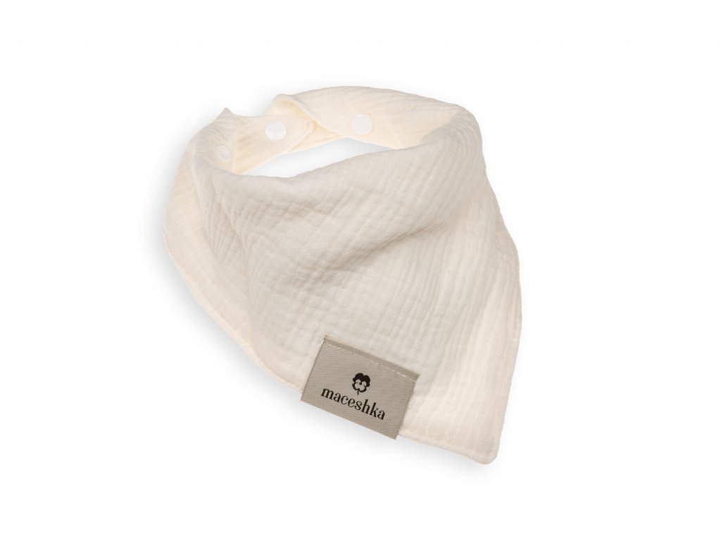 Slintáček Maceshka je vyroben z bavlněného mušelínu. Jedná se o jednu z nejjednodušších, nejjemnějších a nejčistších forem tkaniny na světe. Díky otevřené vazbě vláken je materiál velmi lehký a vzdušný a prodyšný. Zároveň je velmi příjemný na pokožce. Přes svou jemnost a lehkost se jedná o velmi odolný a pevný materiál. Bez problémů můžete mušelín prát, postupem času se bude stávat ještě jemnějším. Každá vrstva bavlněného mušelínu je vlastně spojení dvou vrstev tkaniny neviditelnými stehy. V případě slintáčku se tedy jedná o 4 vrstvy tkaniny. Slintáček se zapíná na patentky a lze zapnout na menší nebo větší velikost.